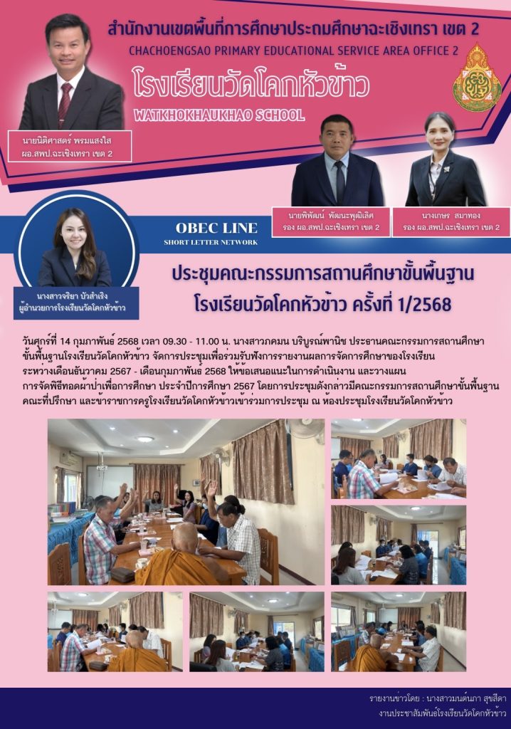 ประชุมคณะกรรมการสถานศึกษาขั้นพื้นฐาน โรงเรียนวัดโคกหัวข้าว ครั้งที่ 1/68