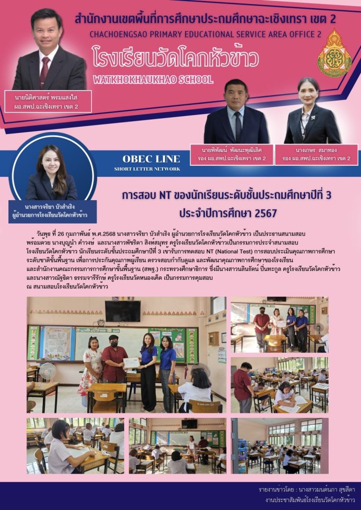 การสอบ NT ของนักเรียนระดับชั้นประถมศึกษาปีที่ 3 ประจำปีการศึกษา 2567