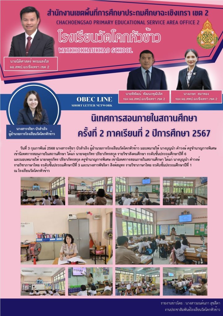 นิเทศการสอนภายในสถานศึกษา ครั้งที่ 2 ภาคเรียนที่ 2 ปีการศึกษา 2567