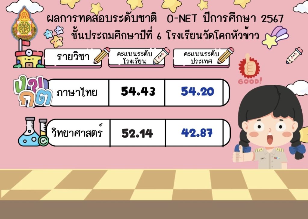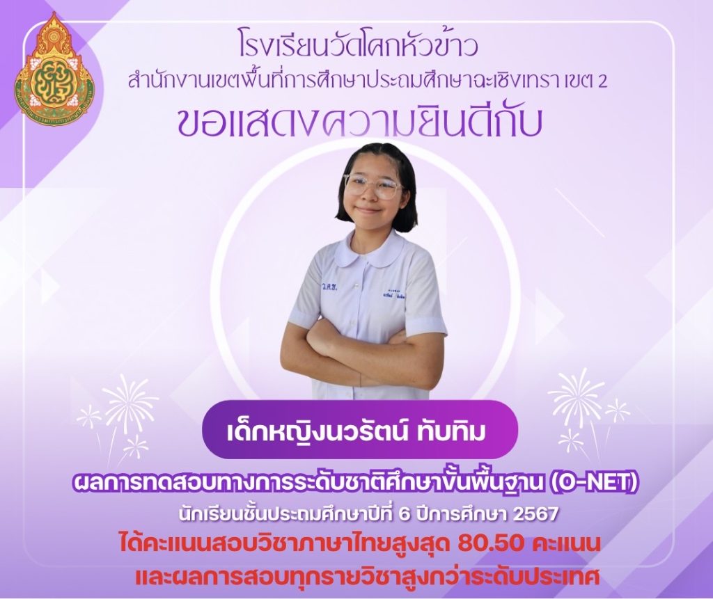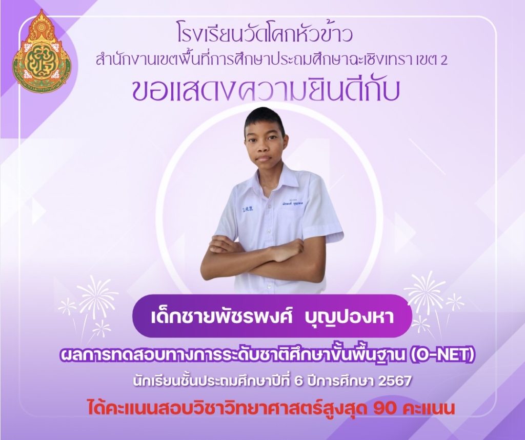 ขอแสดงความยินดีกับนักเรียนชั้นประถมศึกษาปีที่ 6 ปีการศึกษา 2567 ที่ได้คะแนน O-NET สูงสุด